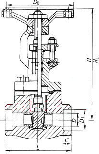 Z61H、Z61Y、Z61W 型 PN100~PN160 承插焊楔式閘閥主要外形及結構尺寸(mm)DN | L | D | D1 | C | H | H1 | D0 | 重量/kg |